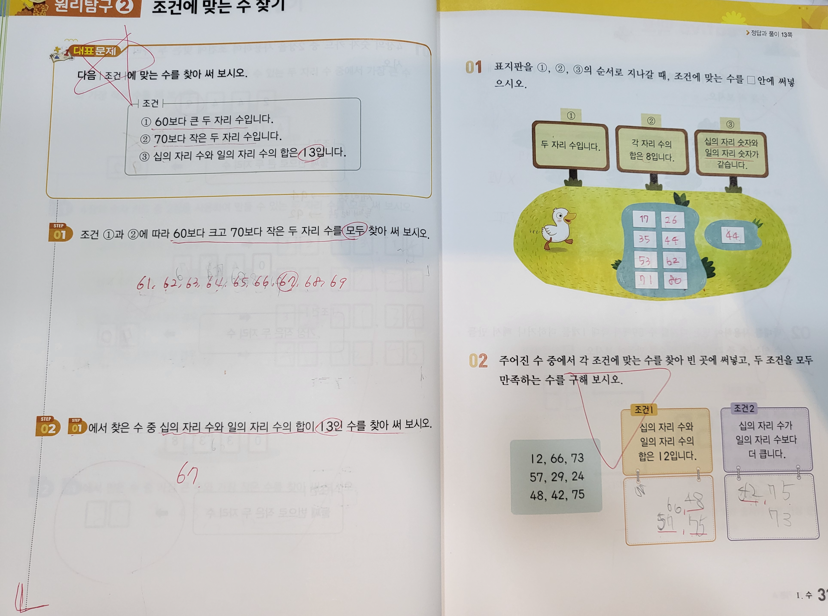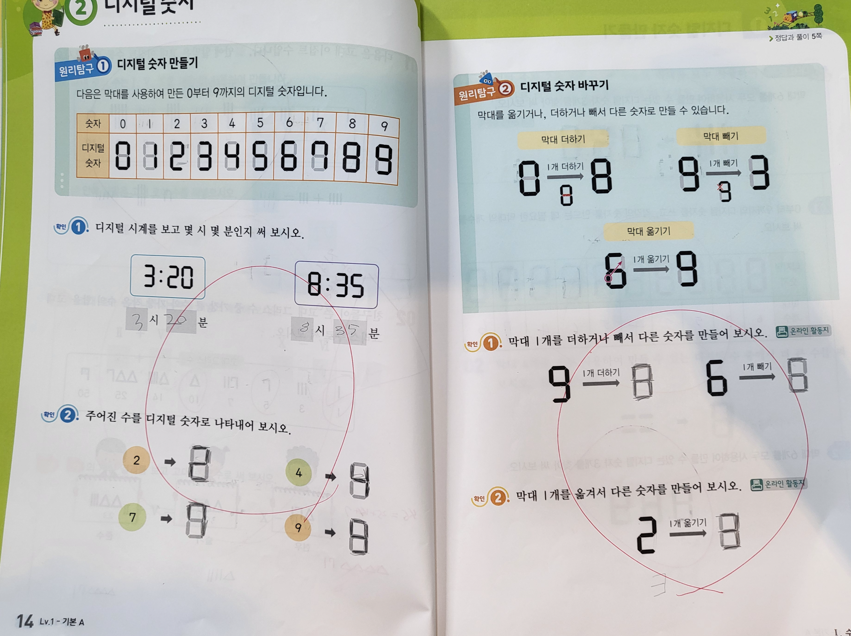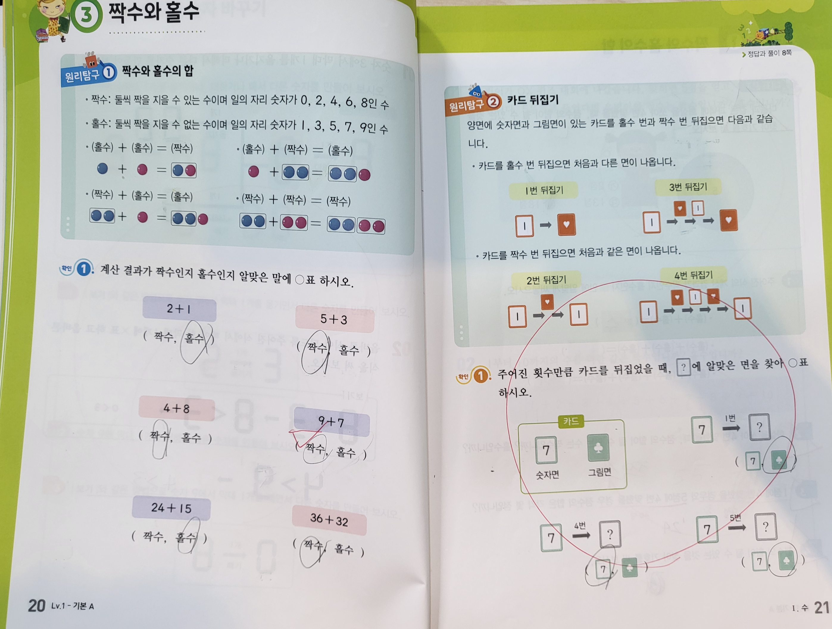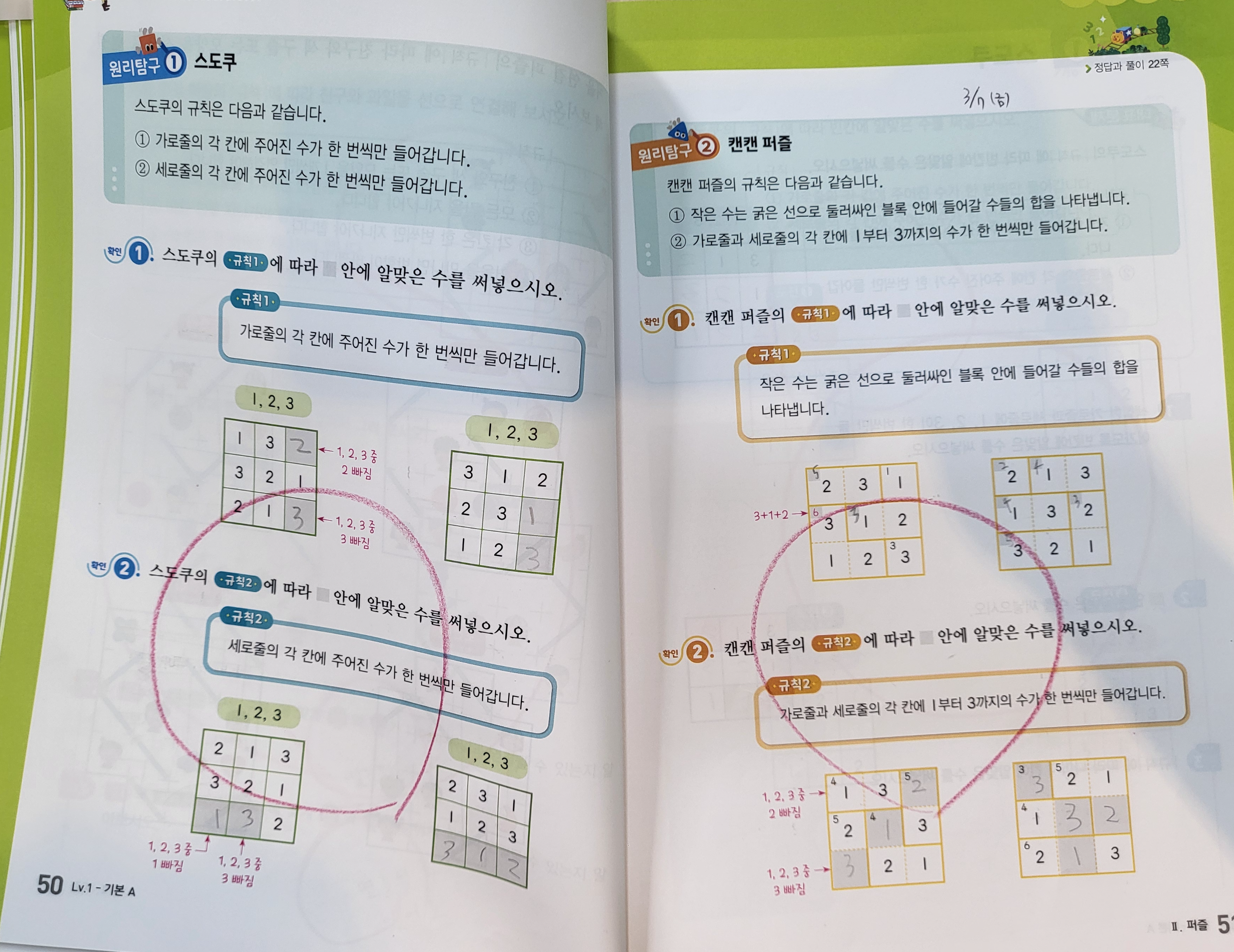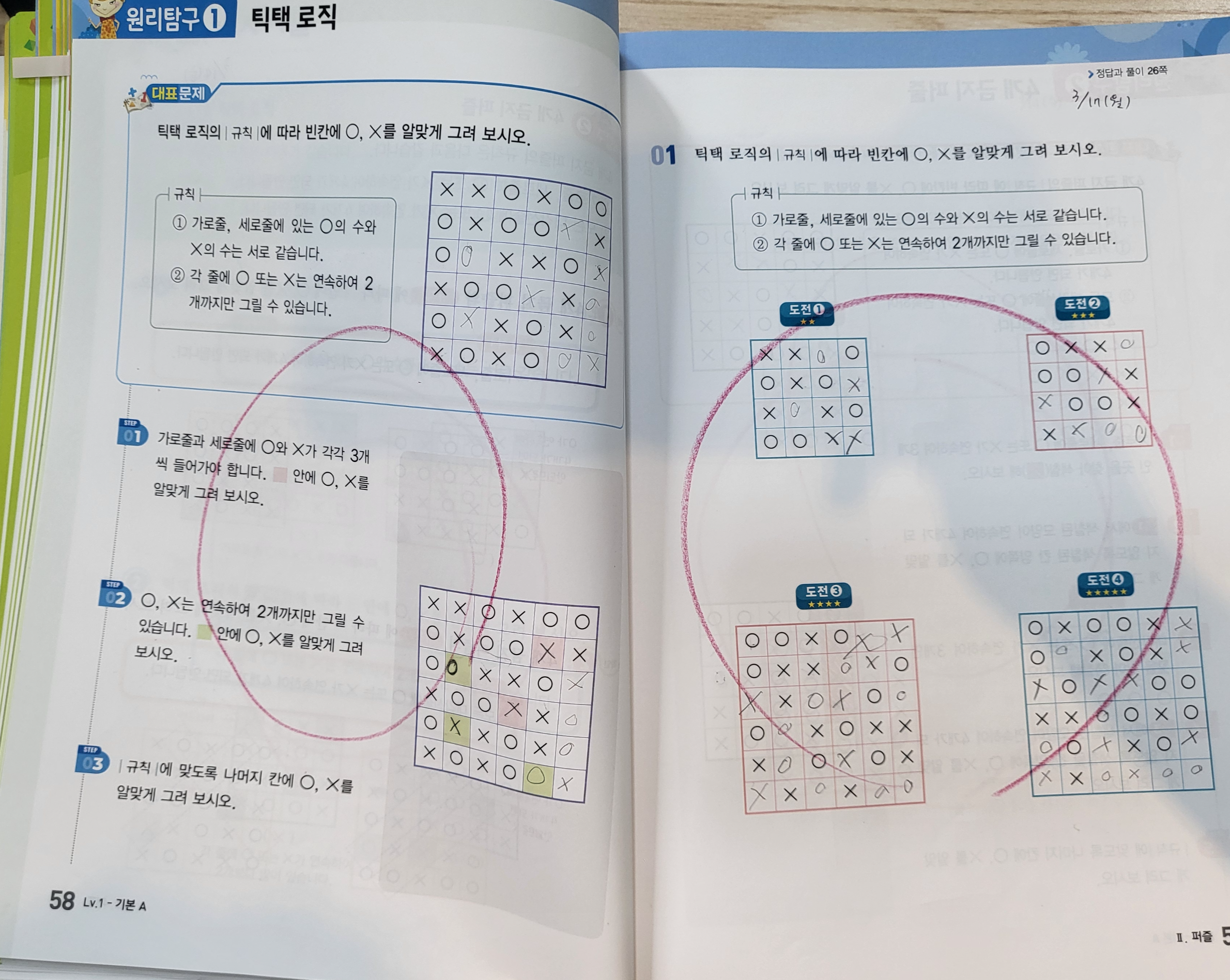 하루에 한 페이지에서 한 장 정도 꾸준히 풀다 보면 아이들이 어느 순간 깨달음을 얻게 됩니다.