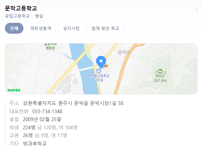 오늘은 원주에는 어떤 인문계 고등학교들이 있는지 알아보겠습니다.