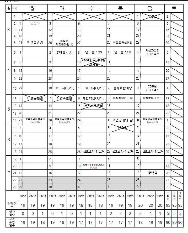 1학기 2회 고사는 6월 26일부터 28일까지 전 학년이 시험을 치릅니다.