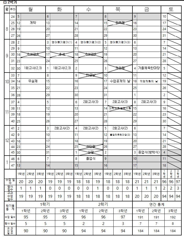 2. 2024년도 년간 학사 일정