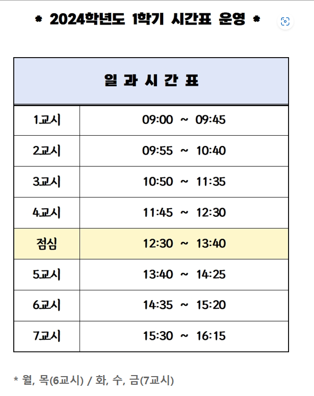 1. 2024학년도 1학기 시간표 운영